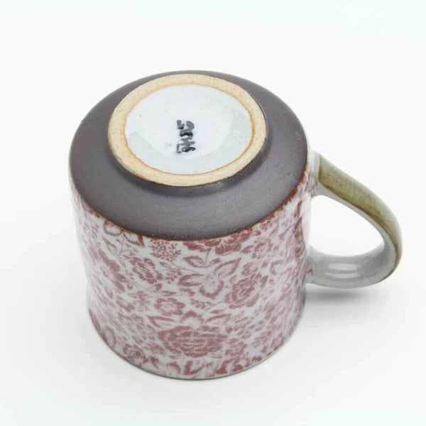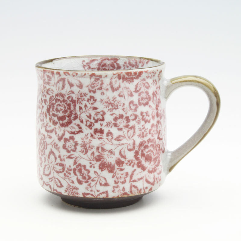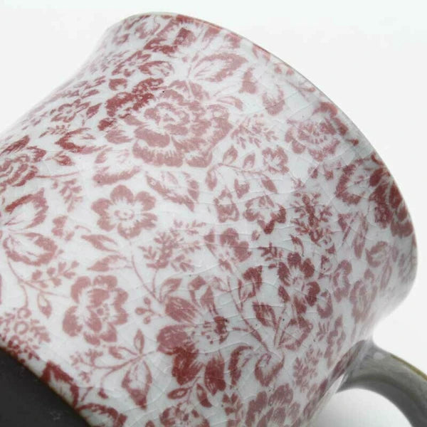イングリッシュローズが全体に施されたマグカップ。